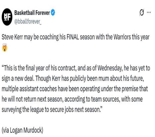北京时间1月22日,据NBA记者Logan Murdock报道,科尔的未来,仍悬而未决,这可能是他执教勇士的最后一个赛季。